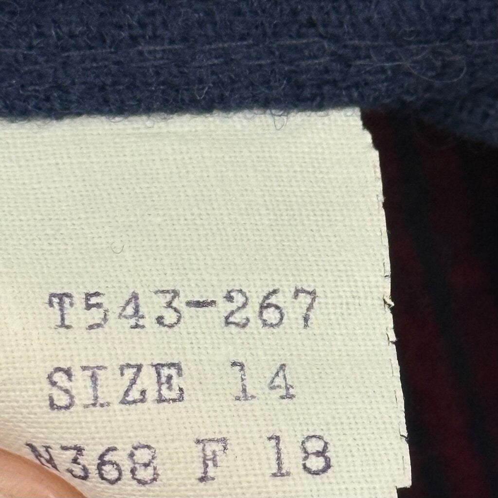 Pockets. Lined. Side zip and button closure. Tag size 14, but fits like a modern 2. Excellent vintage condition. Waist 26", Total Length 28"