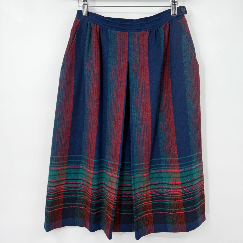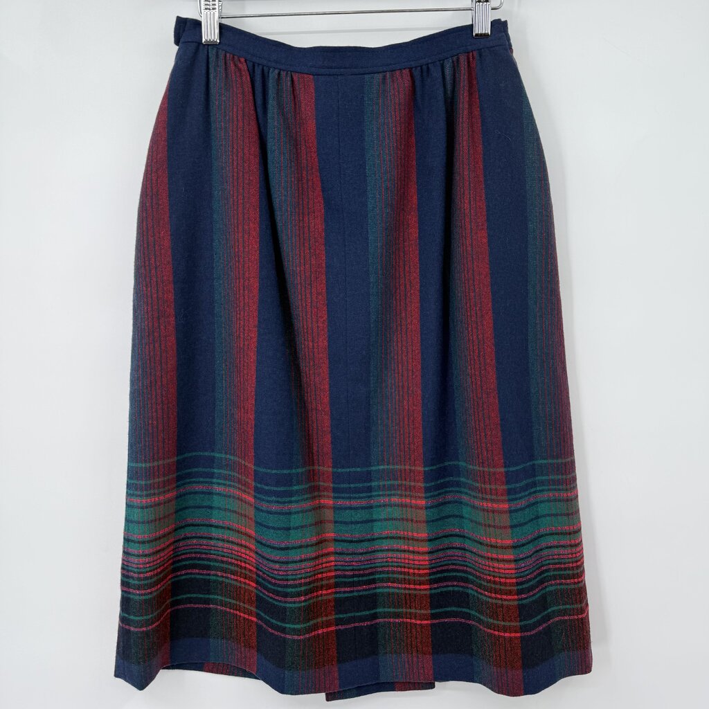 women Pendleton Vintage Wool Striped Pleated Navy Green Red Pink Skirt 2