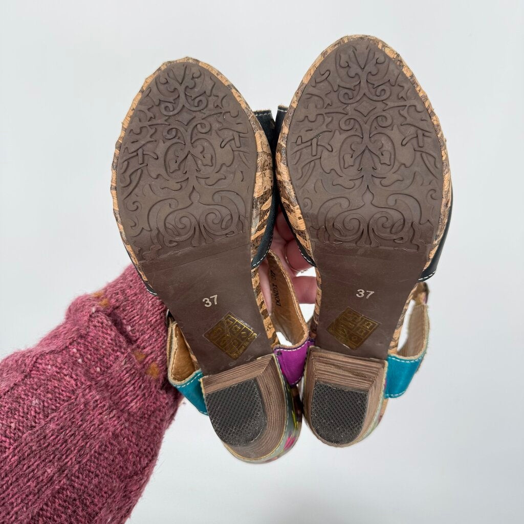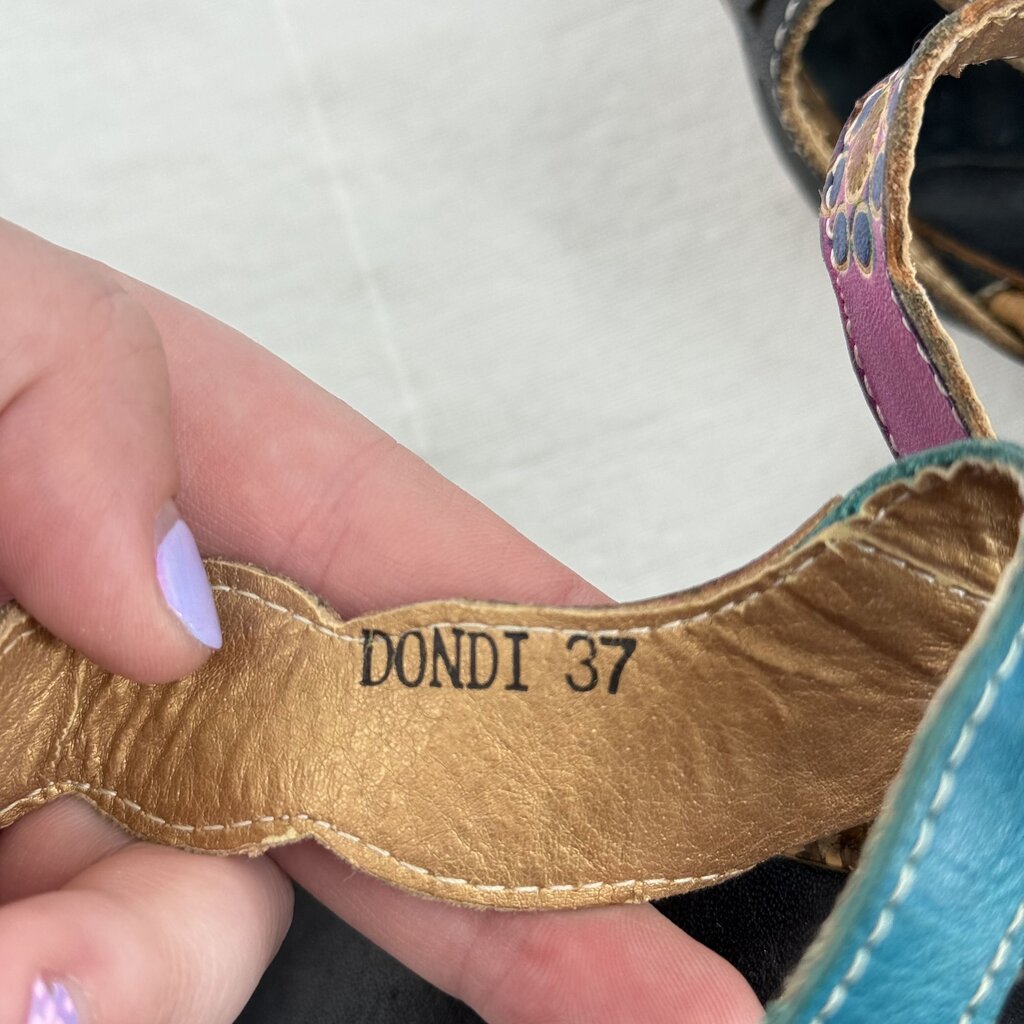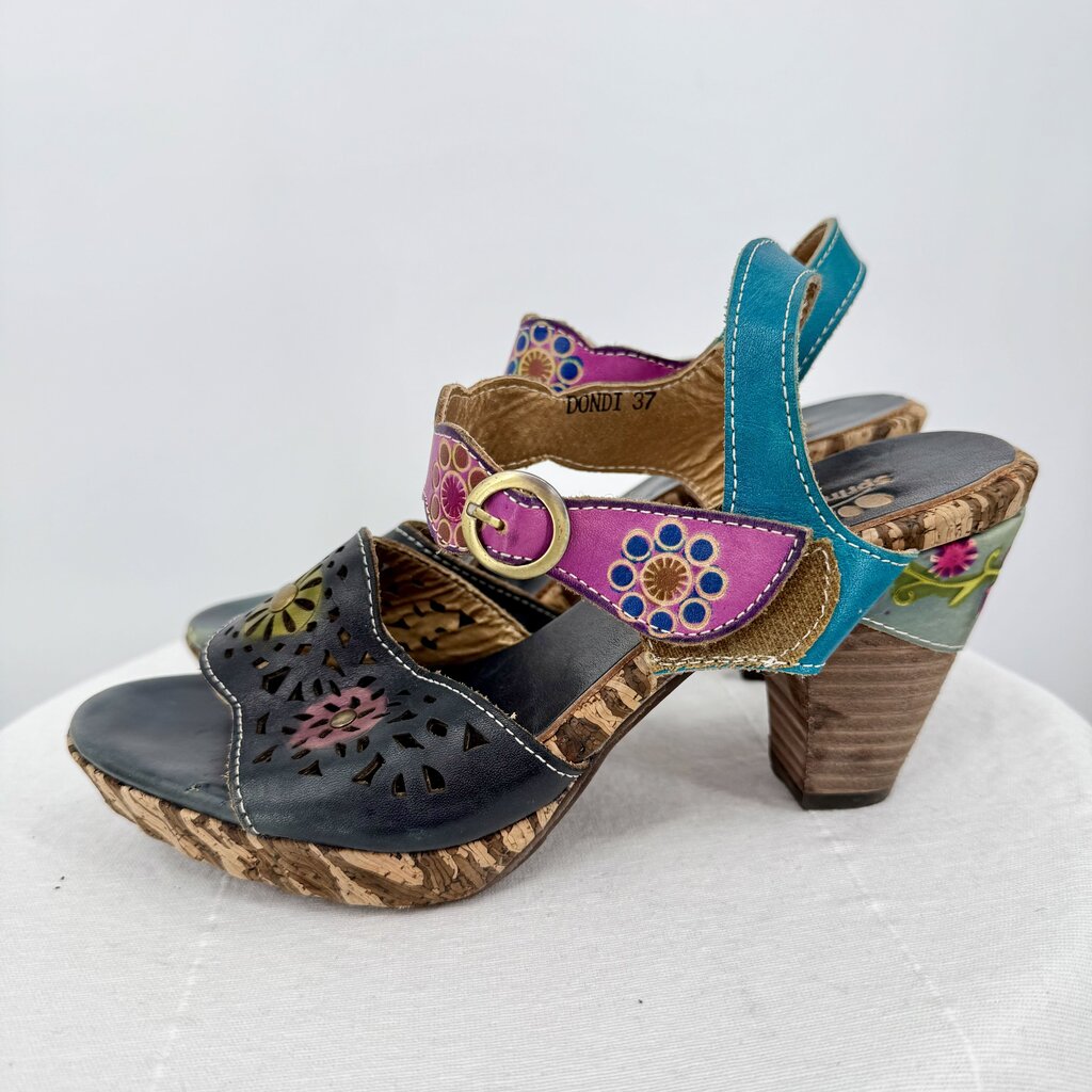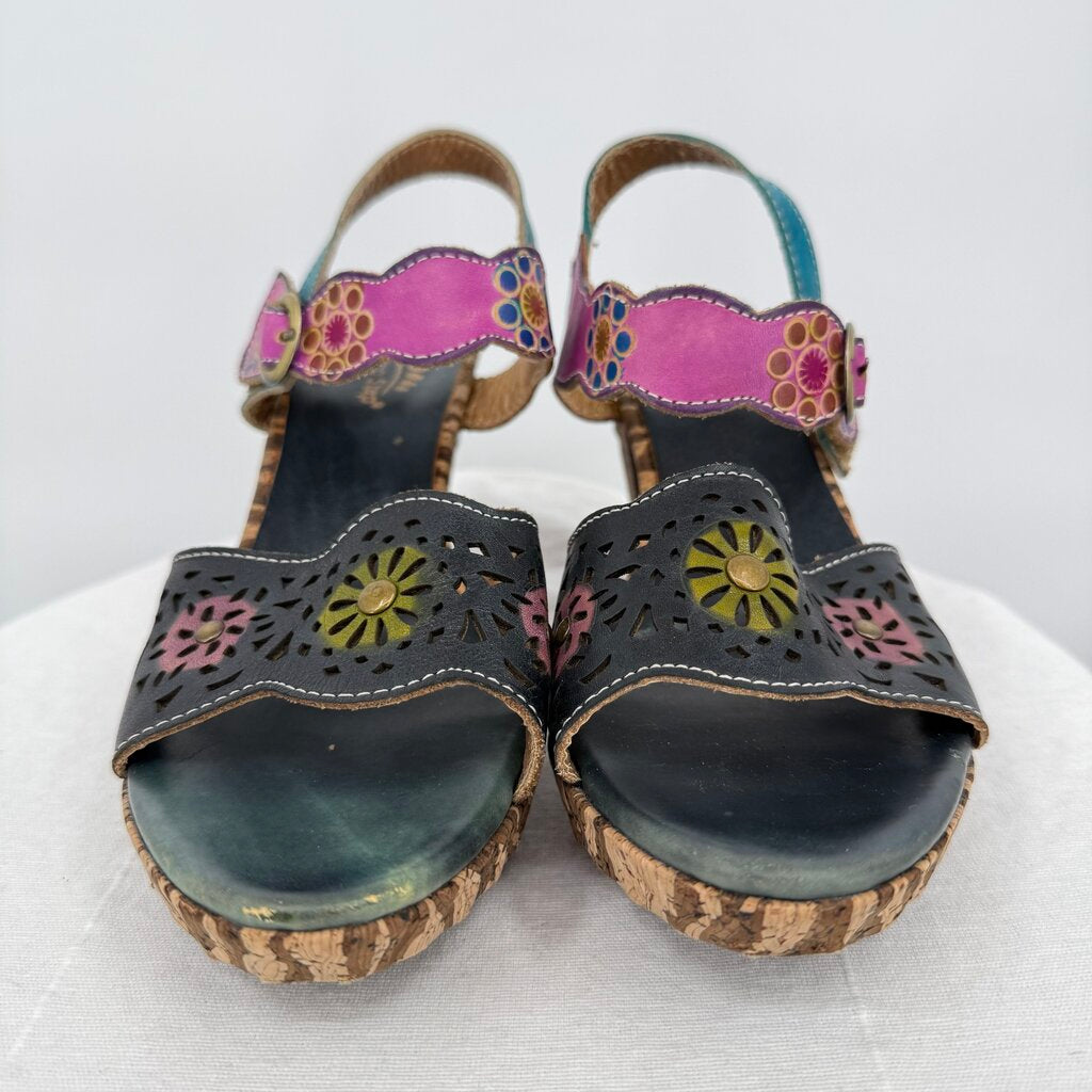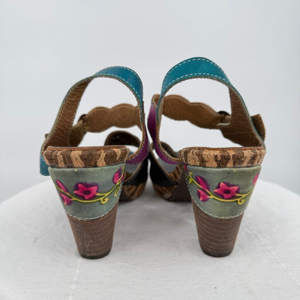 women Spring Step L'Artiste Dondi Leather Floral Sandal Pink/Teal/Multi Shoes 37/6.5