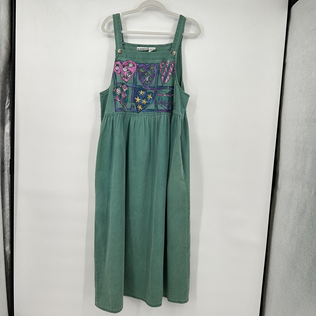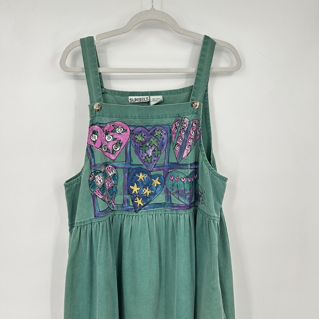 women Sunbelt Vintage Handpainted Signed Jumper Pine Green Dress M