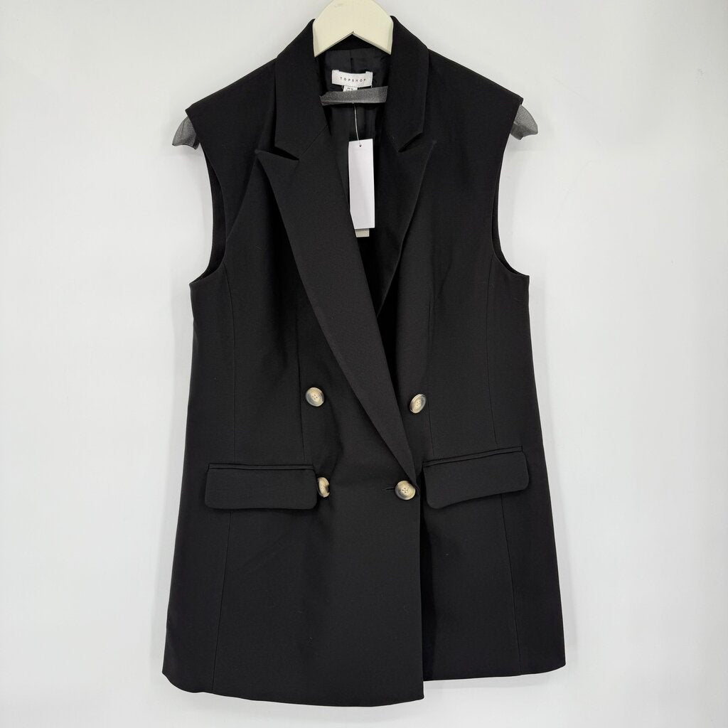 women Topshop NWT Double Breasted Vest Black Jacket 6