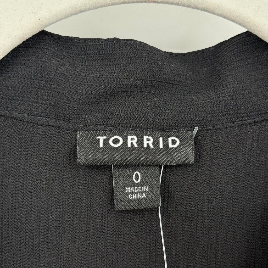 women Torrid NWT Chiffon Neck Tie Blouse Black Woven Top 0/L