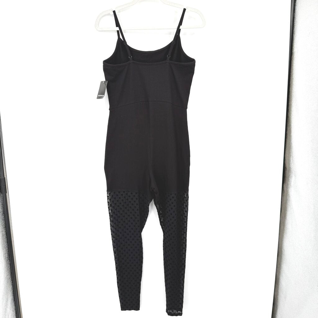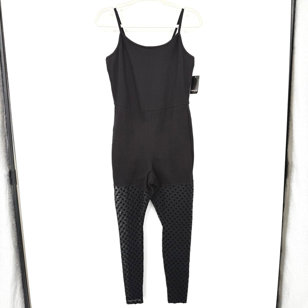 women Torrid NWT Flocked Leg Cat Suit Black Jumpsuit/Romper 0/L