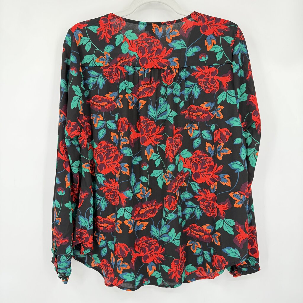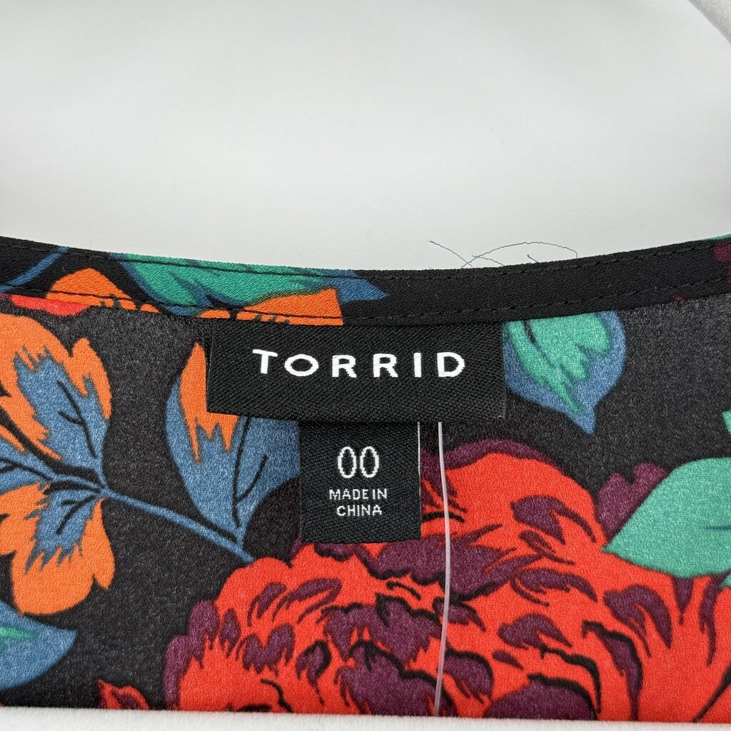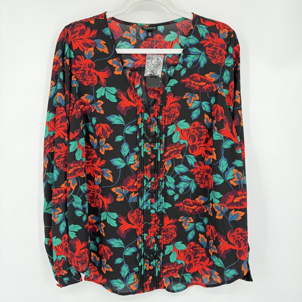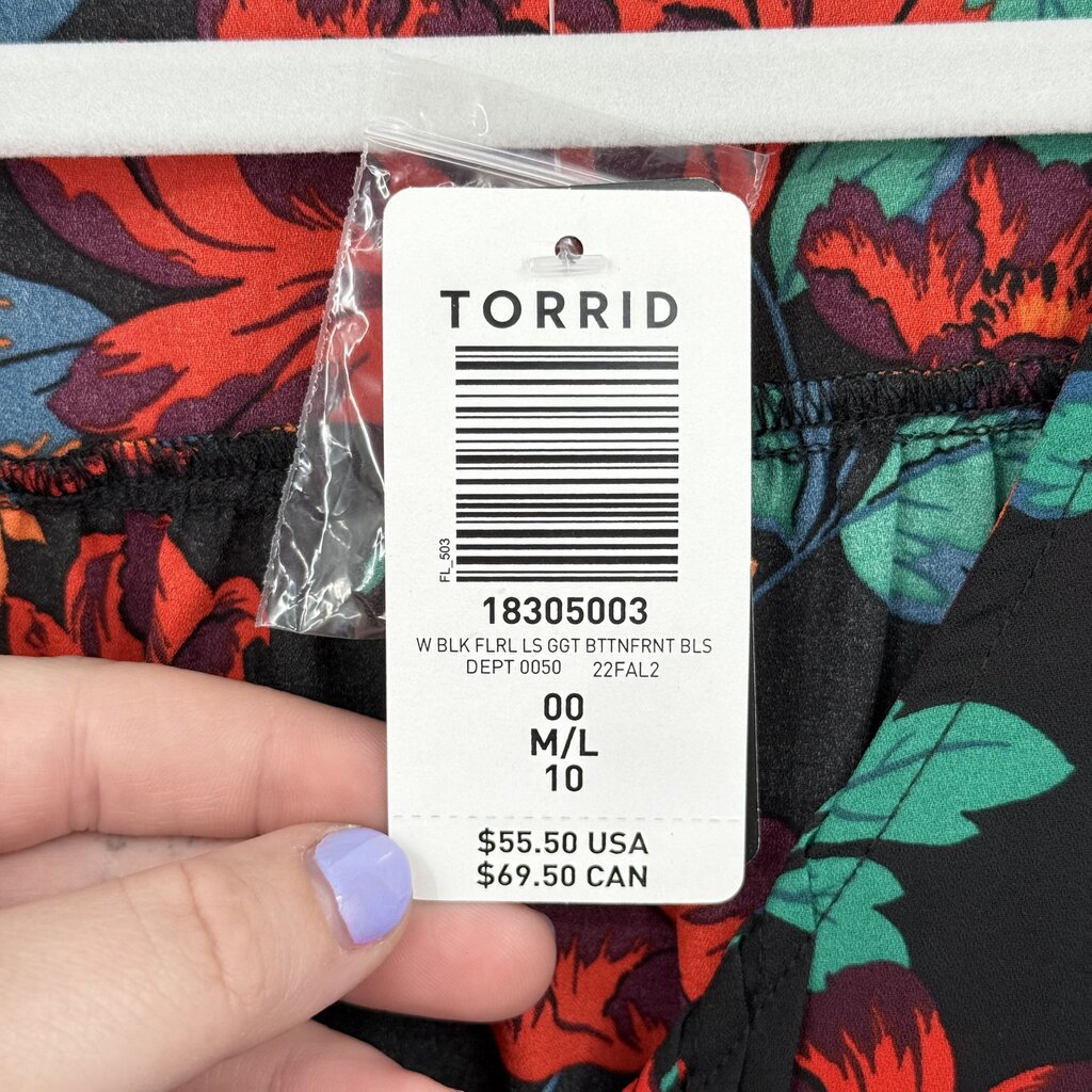women Torrid NWT Floral Button Front Blouse Black Multi Woven Top 00/M