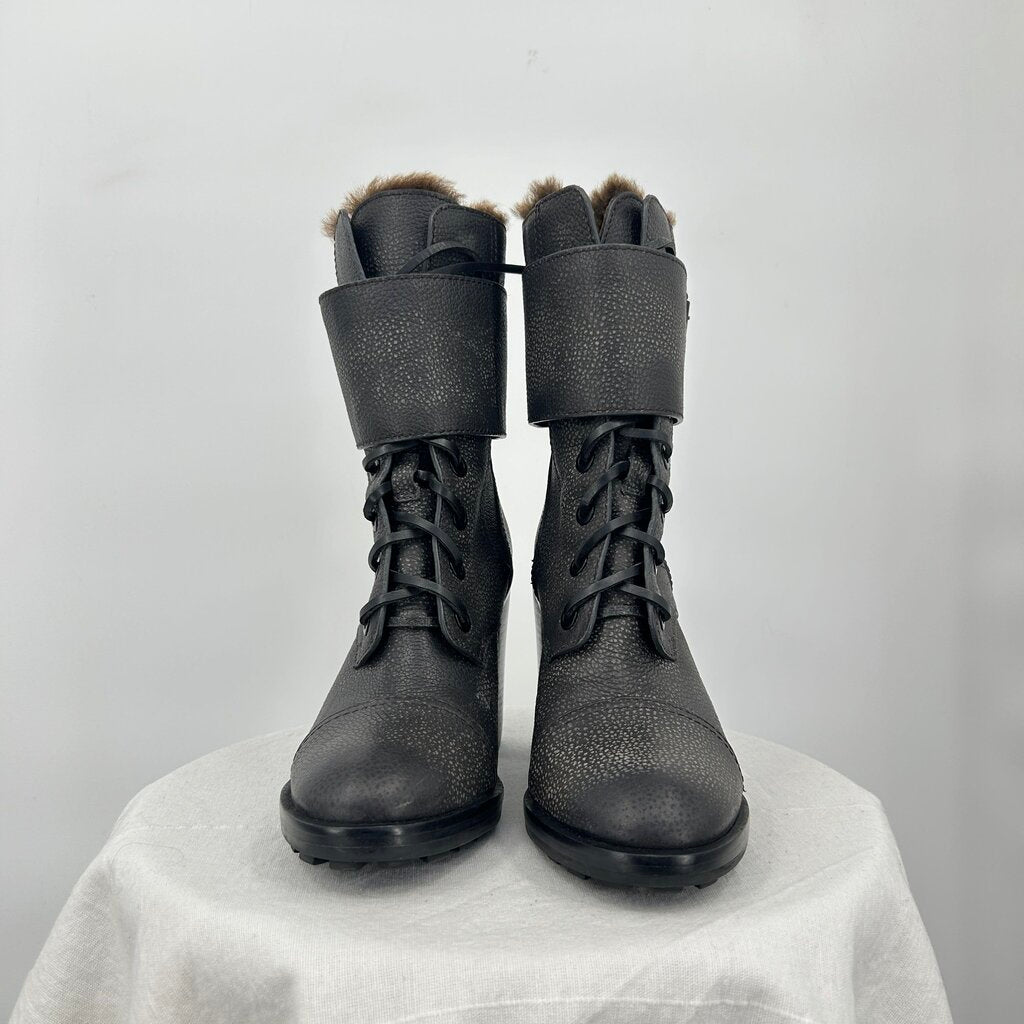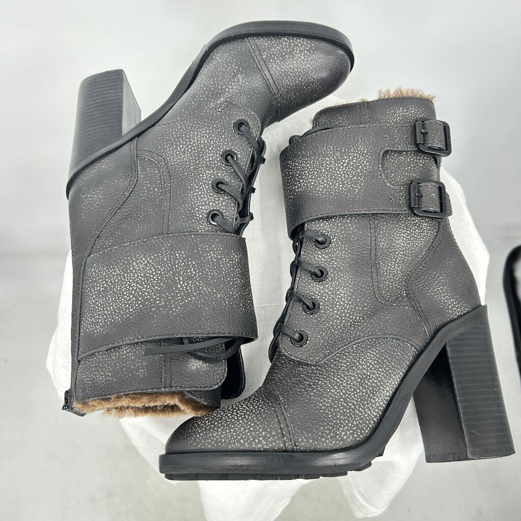 women Tory Burch Broome Fur Lined Combat Boots Gray Shoes 7