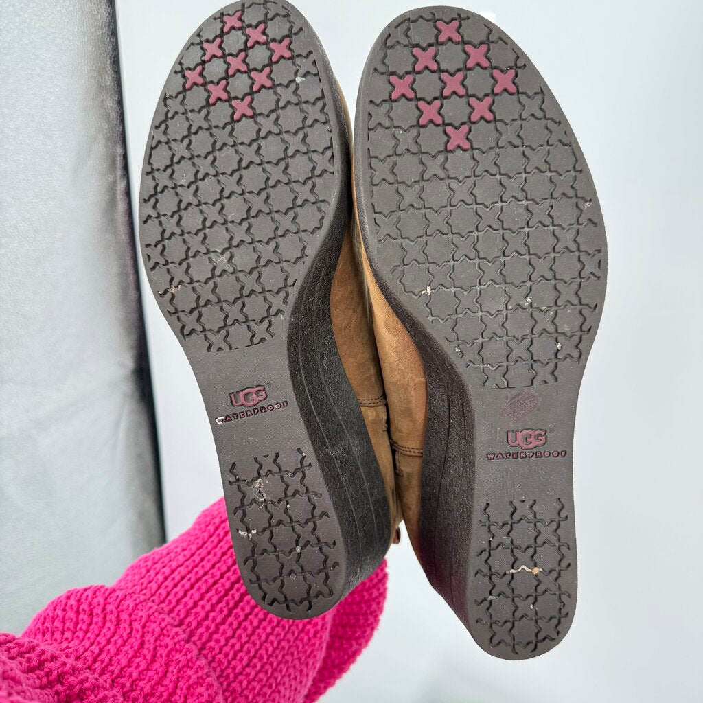 women Ugg Emalie Wedge Leather Boots Brown Shoes 12
