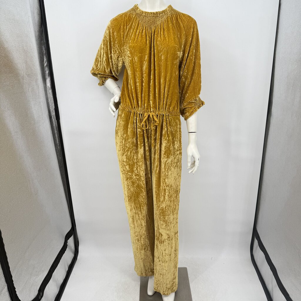 women Ulla Johnson 2017 Sephare Velvet Jumpsuit Mustard Yellow Jumpsuit/Romper M