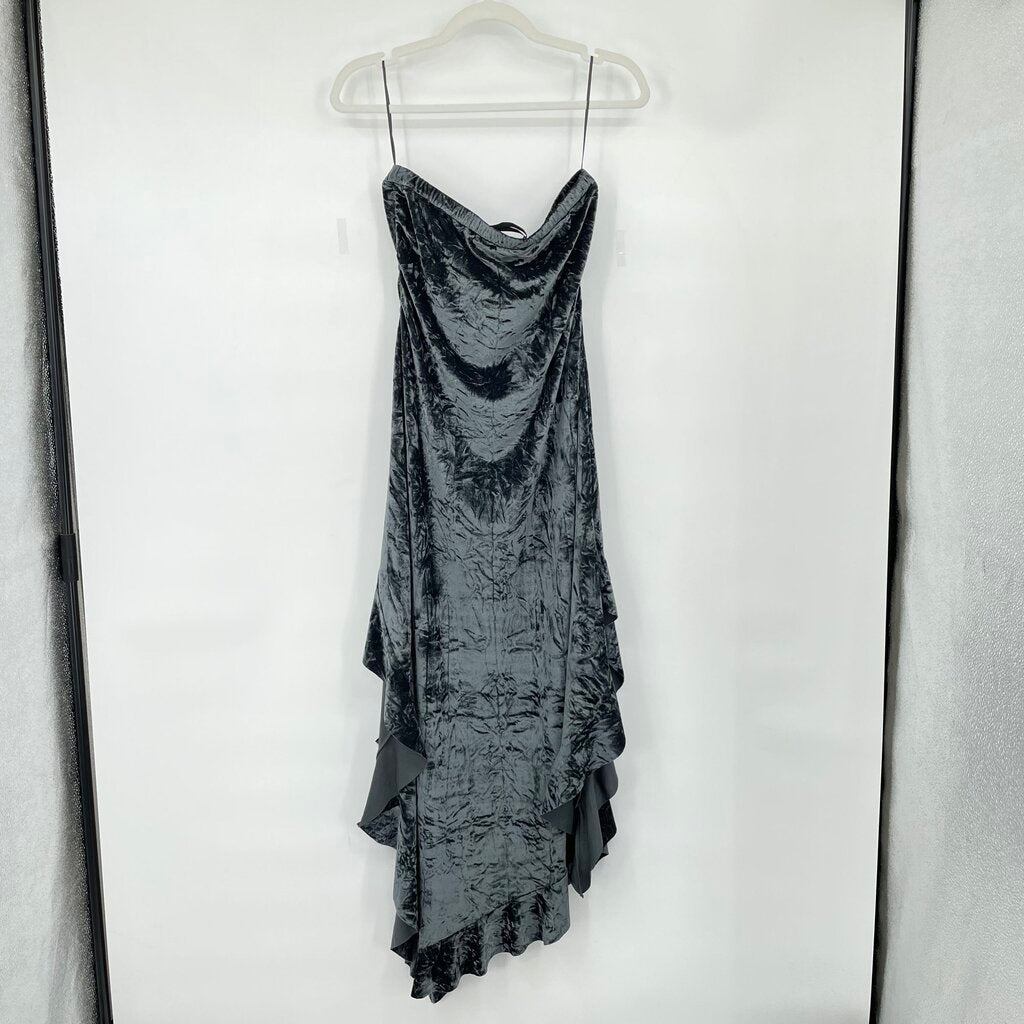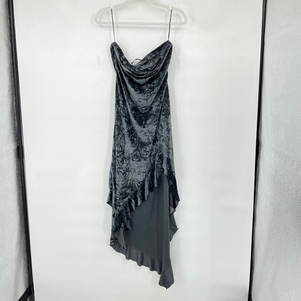 women Urban Outfitters NWT Strapless Velvet Asymmetrical Hem Black Dress L