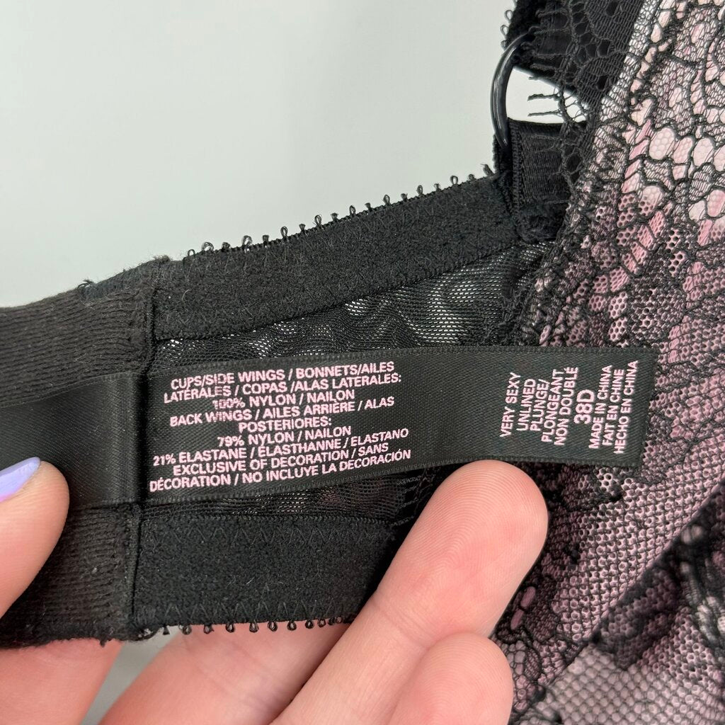 women Victoria's Secret Very Sexy Unlined Plunge Black Pink Intimates/Sleepwear 38D