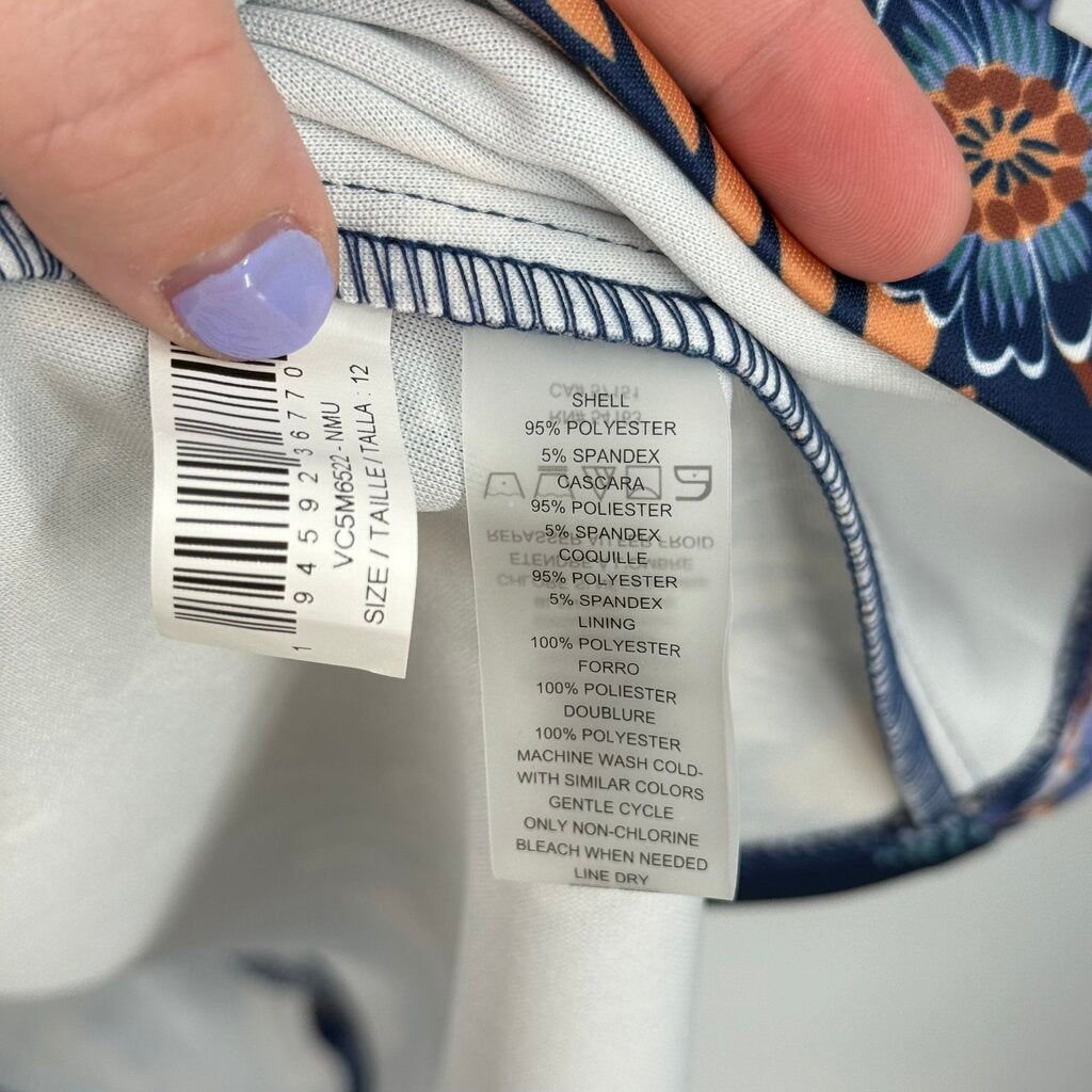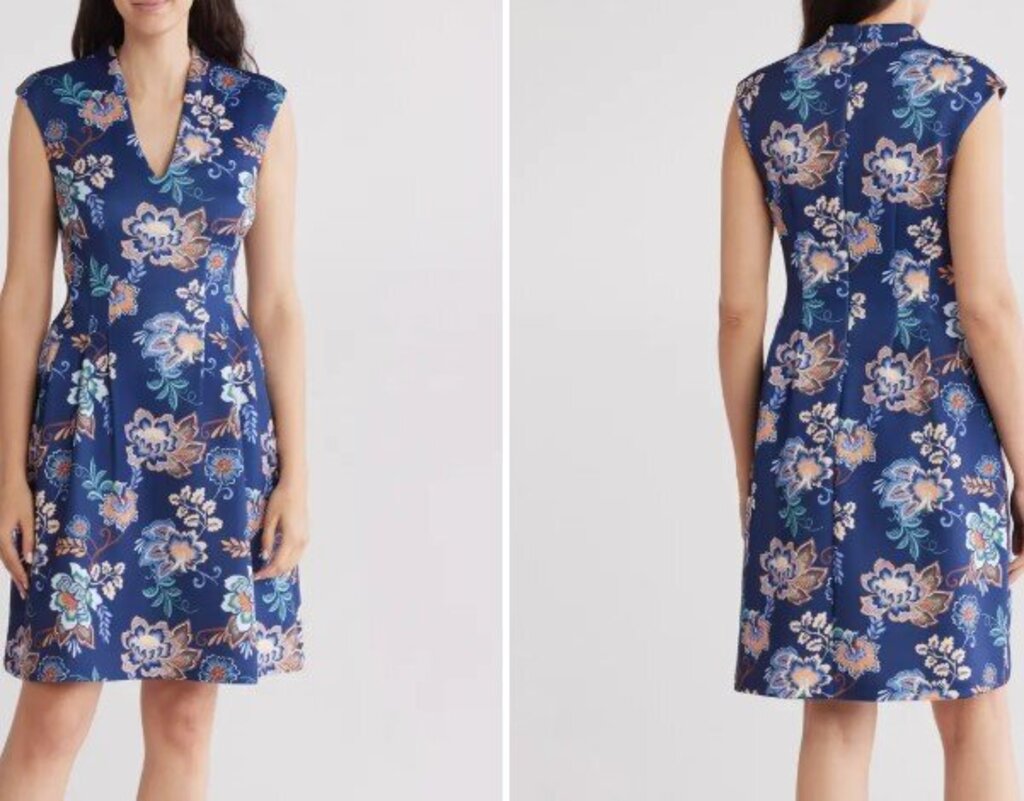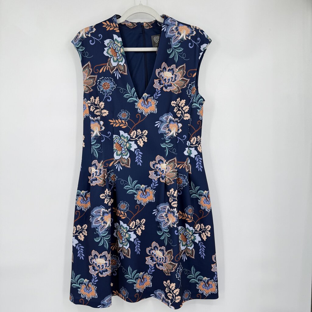 women Vince Camuto Floral Scuba Knit Fit & Flare Navy Multi Dress 12