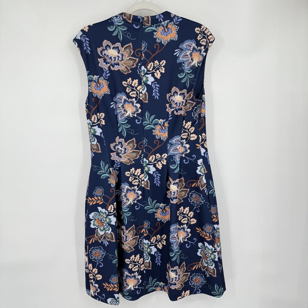 A garden of vibrant flowers blooms upon this fit-and-flare dress that's finished with princess seams and pleats at the full skirt. Hidden back-zip closure. V-neck. Sleeveless. Lined.Excellent used condition. Bust 39", Total Length 36.5"