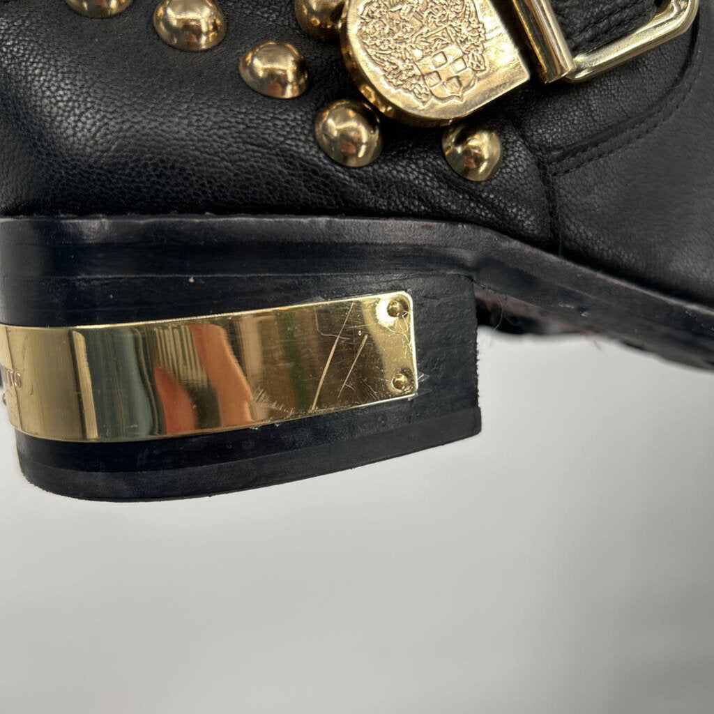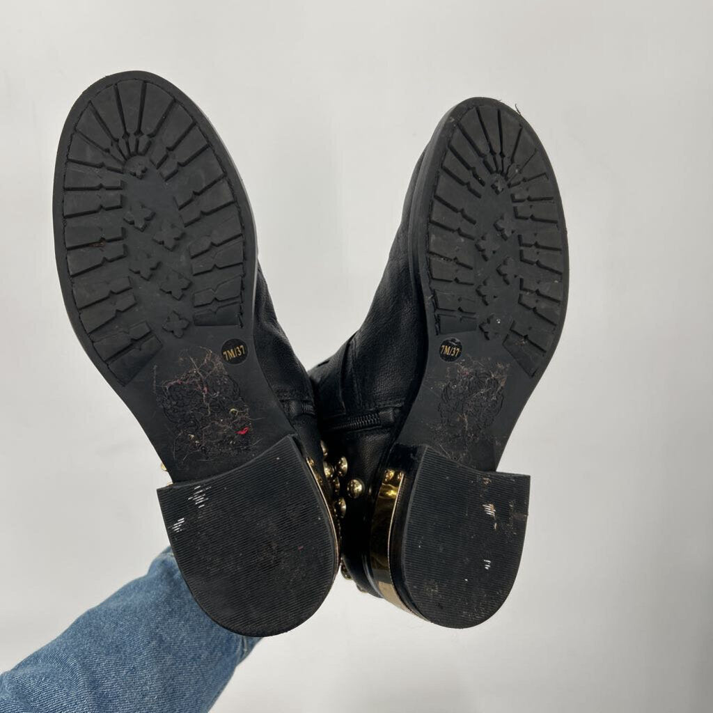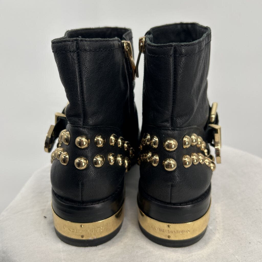 women Vince Camuto Windetta Leather Moto Boots Black Gold Shoes 7.5