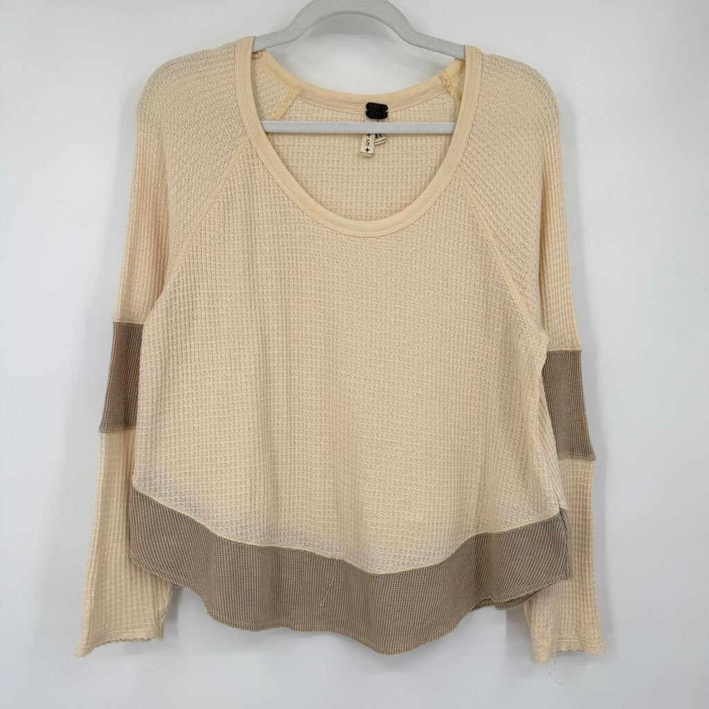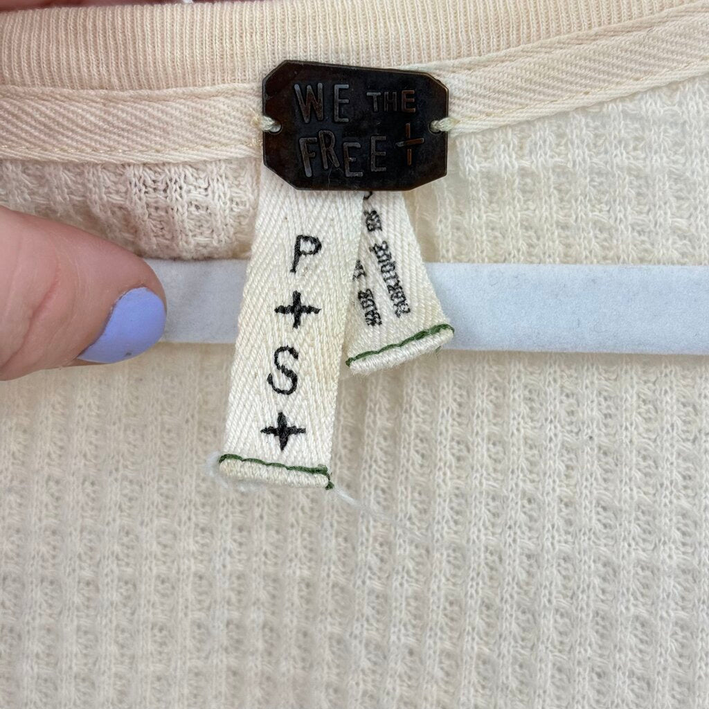 women We the Free Diamond Dozen Waffle Knit Thermal Cream Tan Knit Top S