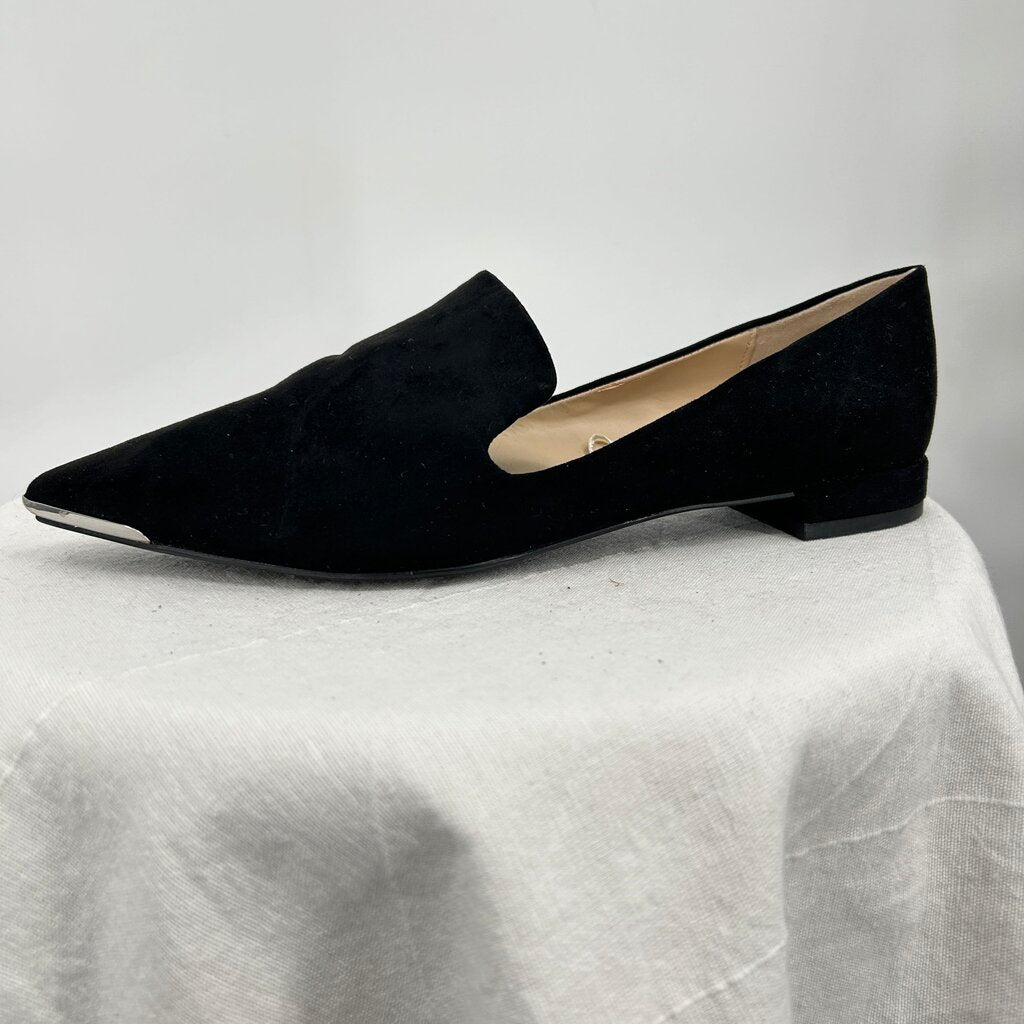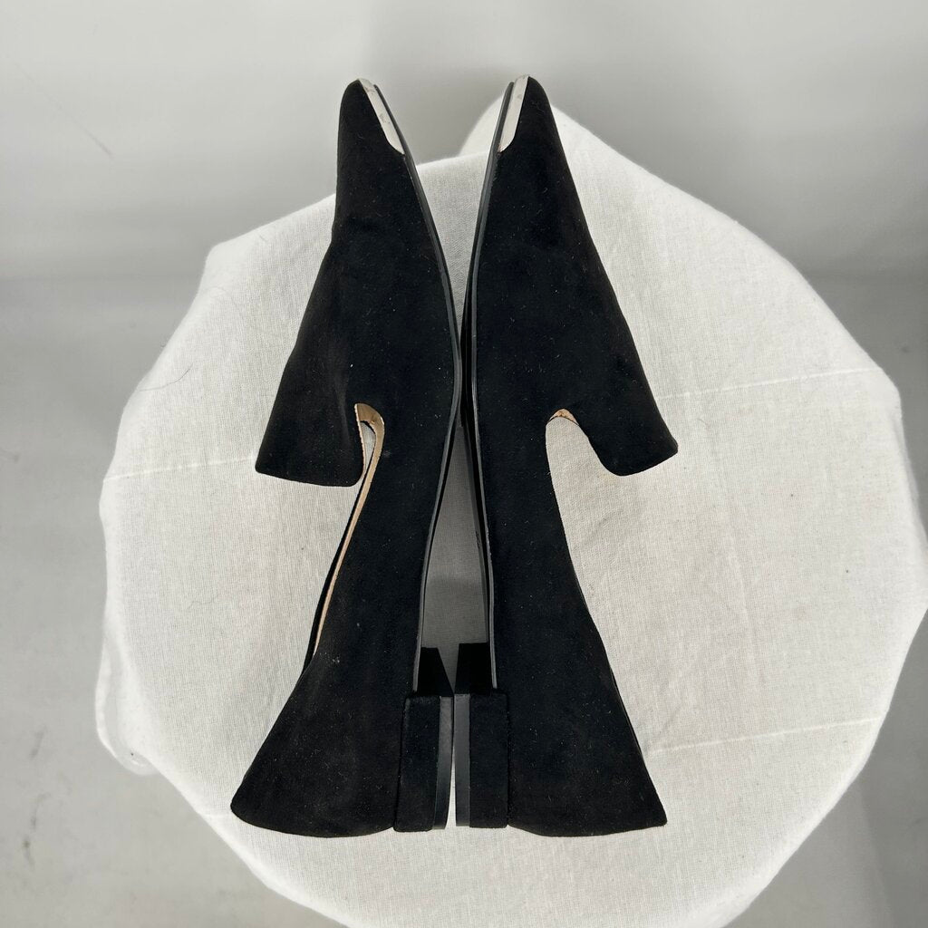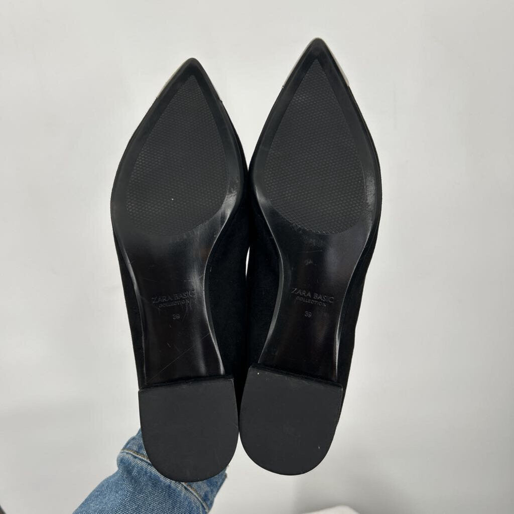 women Zara Suede Pointed Toe Flats Black Shoes 39/8.5