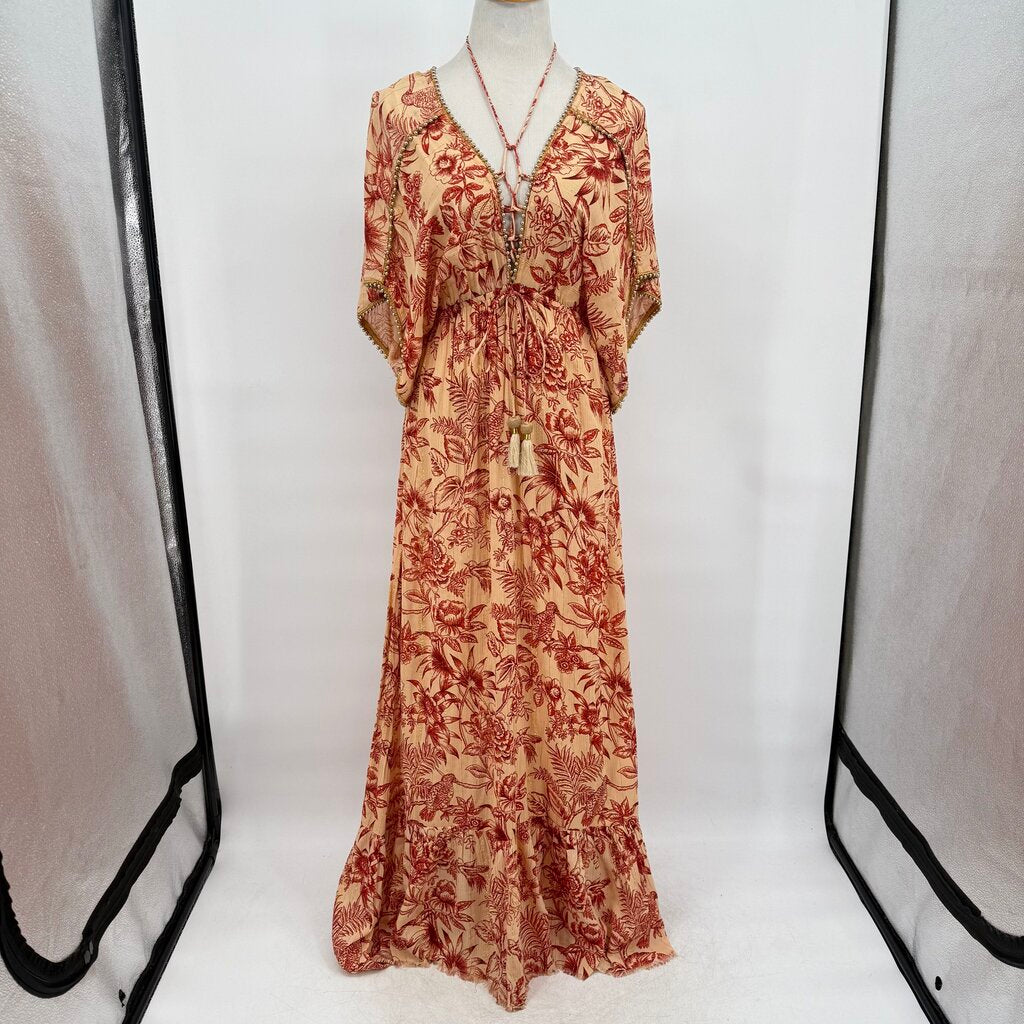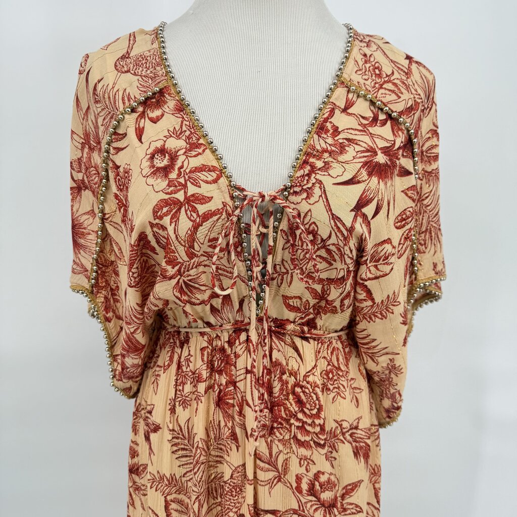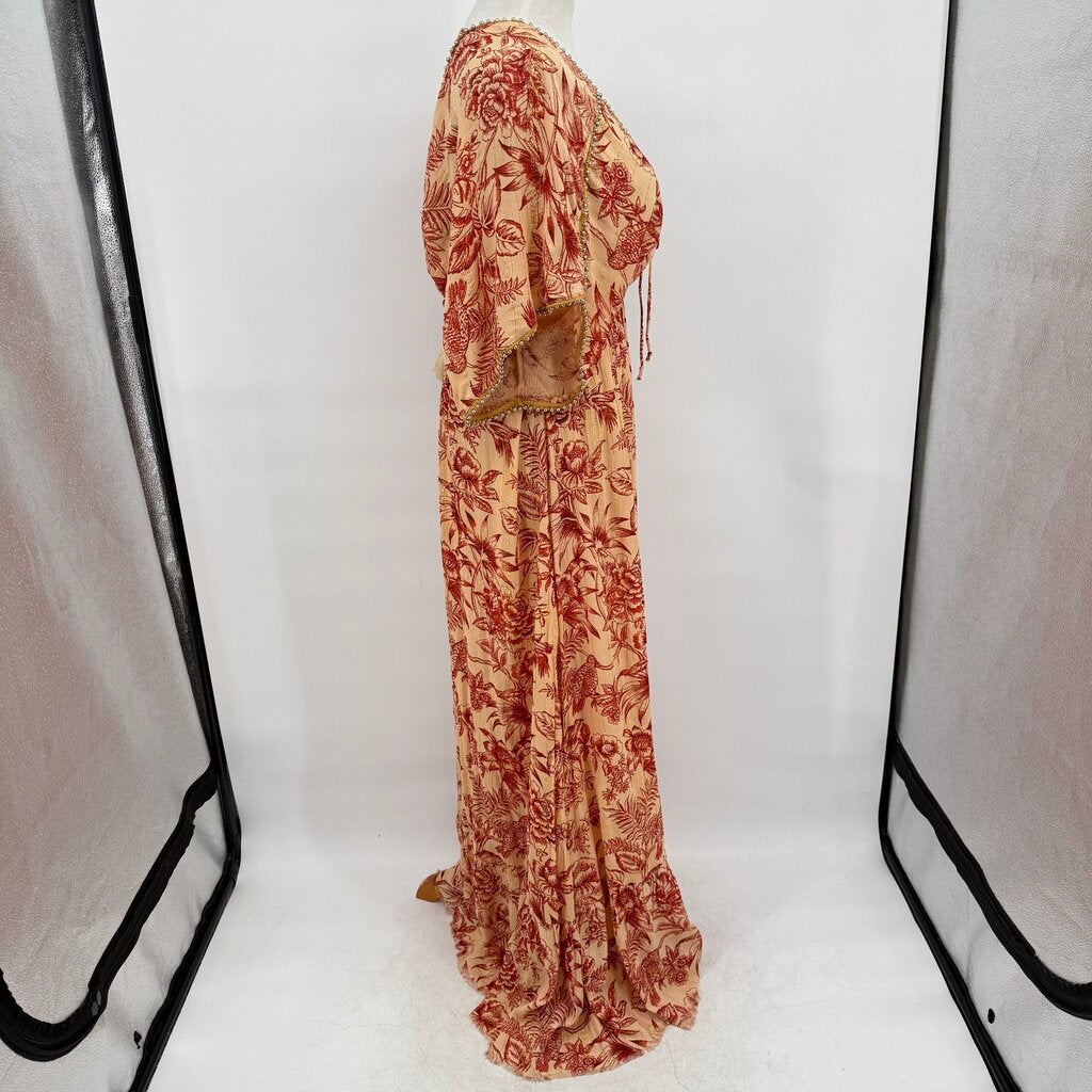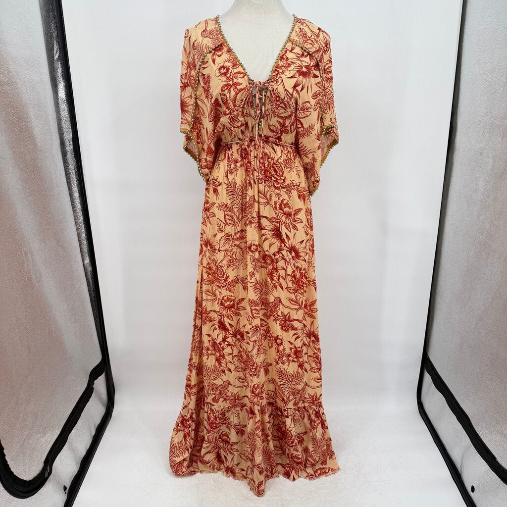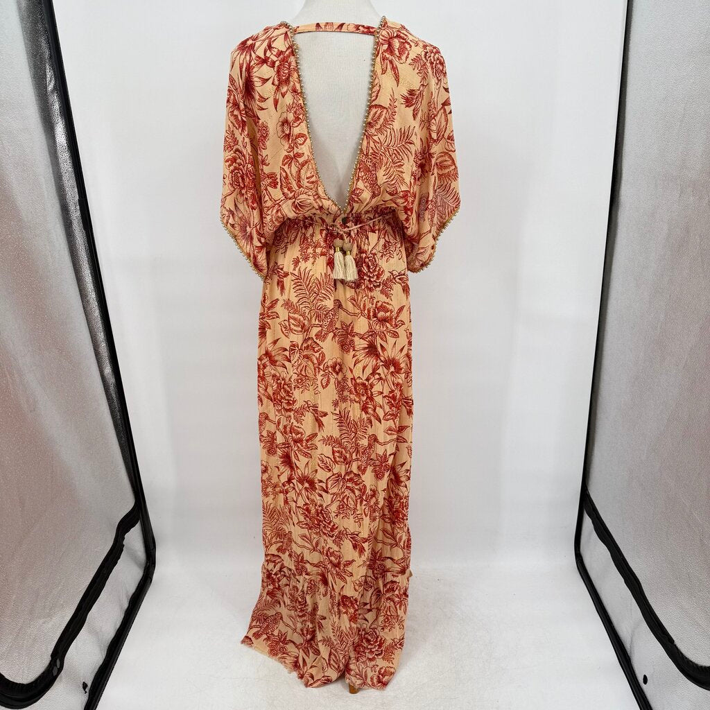women Z&L NWT Boho Print Maxi Peach & Red Dress M